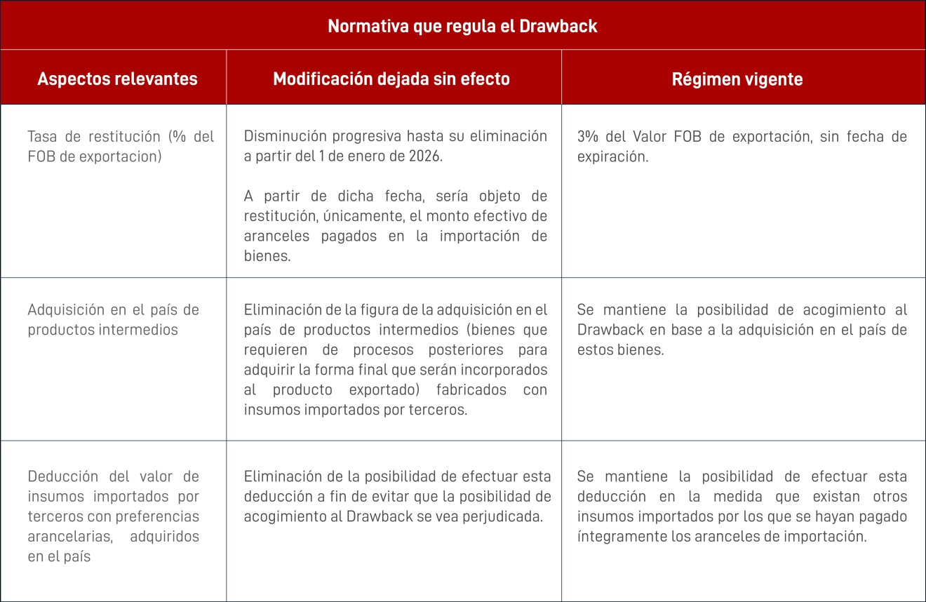 Dejan sin efecto normativa orientada a “desactivar” el Drawback