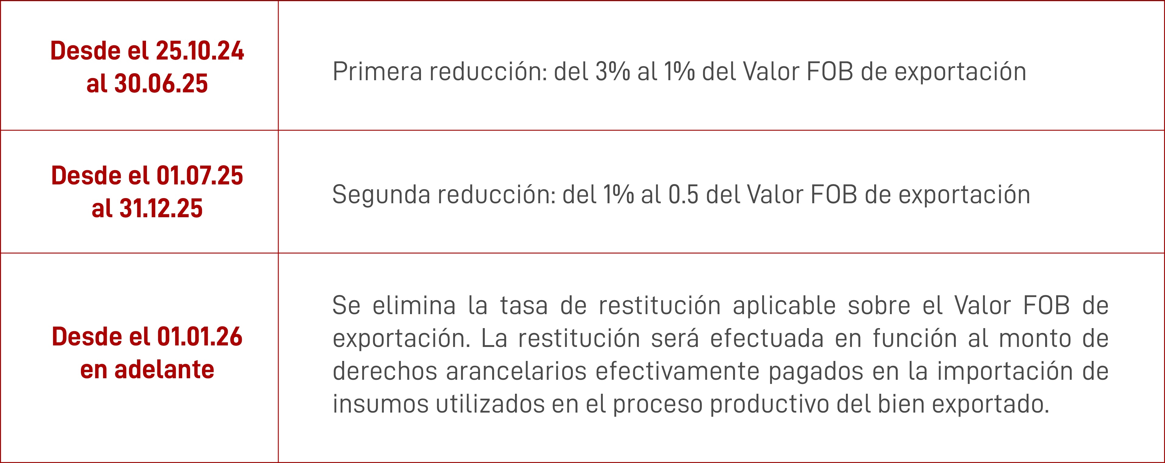 A partir del 01.01.26 ya no se admitirá la posibilidad de efectuar esta deducción respecto de insumos importados bajo la Modalidad 2 (importación indirecta), lo cual implica la pérdida del Drawback en todos los casos en que se verifique la aplicación de beneficios arancelarios en la importación de insumos.