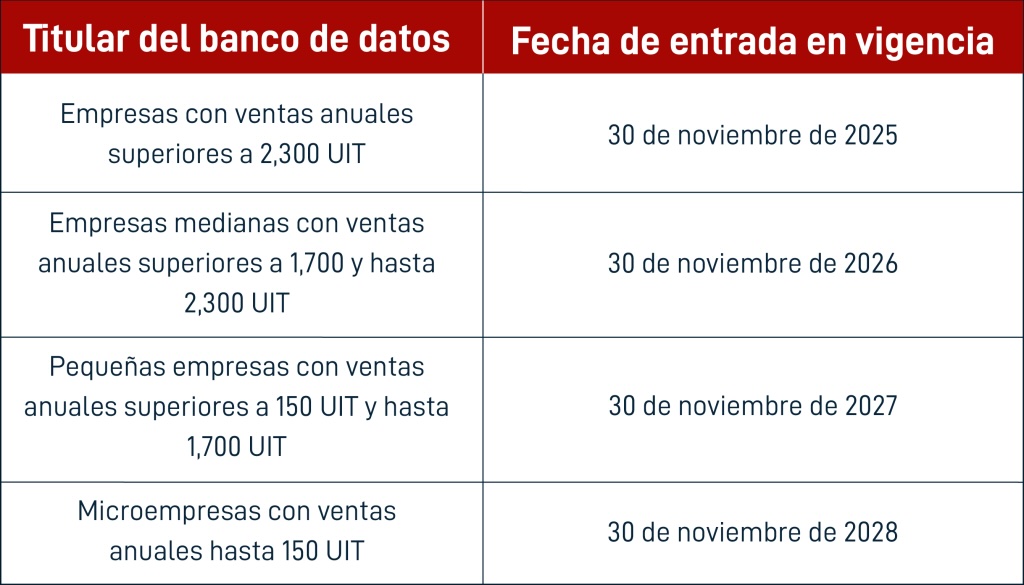 La obligación de designar a un Oficial de Datos Personales entrará en vigencia progresivamente, de acuerdo con lo siguiente: