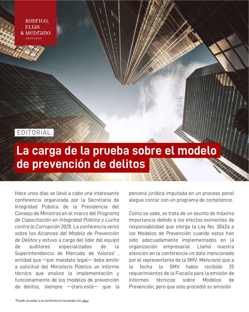 El 2 de agosto de 2025, la SMV participó en una interesante conferencia organizada por la PCM sobre Modelos de Prevención de Delitos. Se informó que, de 25 solicitudes de la Fiscalía, solo una cumplió los requisitos para emitir informe técnico, lo cual evidencia la necesidad de una mejor comprensión del régimen legal de responsabilidad penal corporativa.